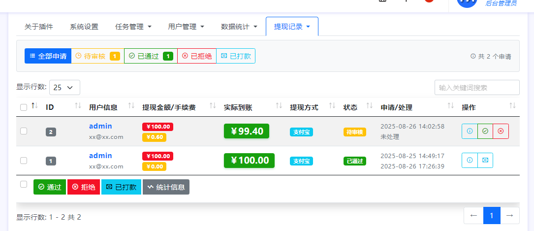 精美的前台管管理,一目了然的数据统计,后续会更新在相应系统的提现功能上。