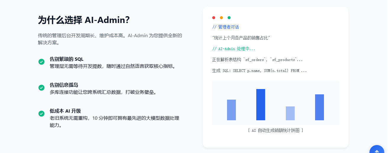 AI-Admin 是一款专为现有系统设计的 AI后端数据库管理 。